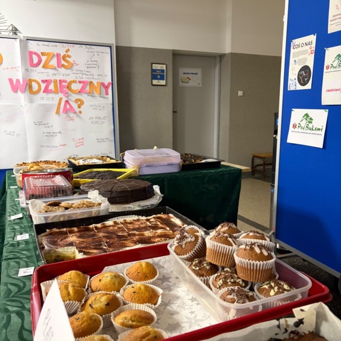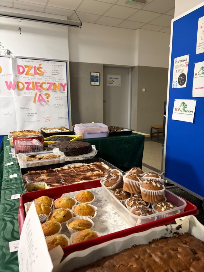 Dzi臋kujemy wszystkim uczniom, nauczycielom i osobom wspieraj膮cym, które zaanga偶owa艂y si臋 w kiermasz 馃馃徎. Ka偶dy kawa艂ek ciasta by艂 nie tylko gestem wsparcia, ale te偶 cegie艂k膮 do budowania wi臋kszej 艣wiadomo艣ci spo艂ecznej.鉂わ笍