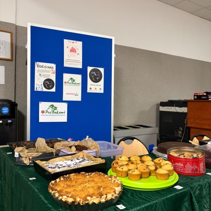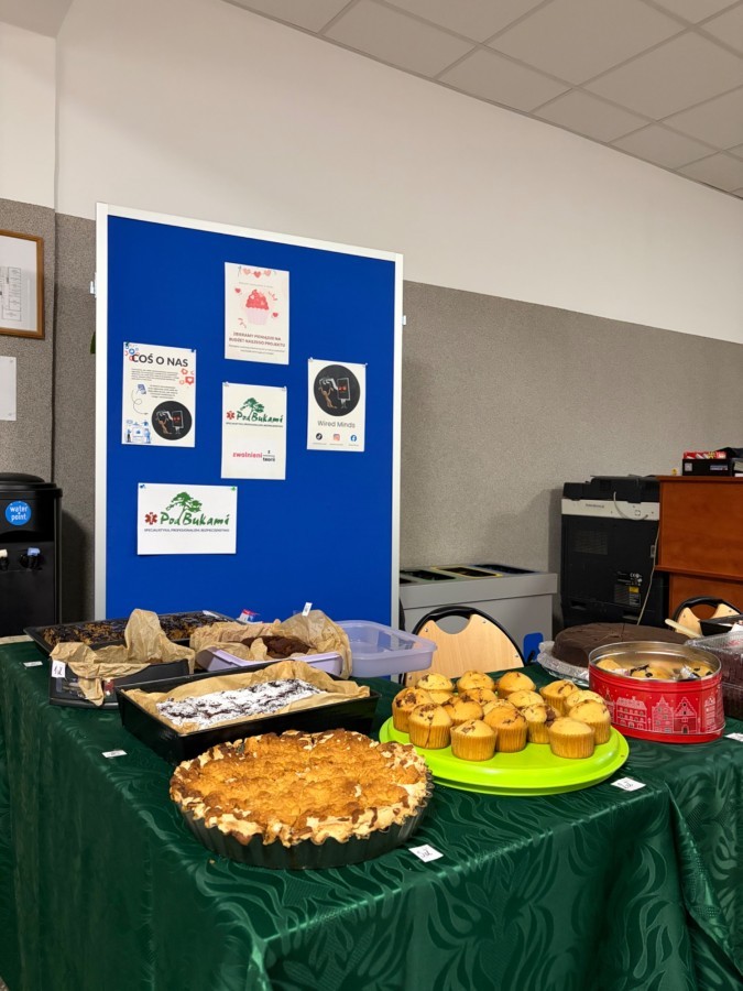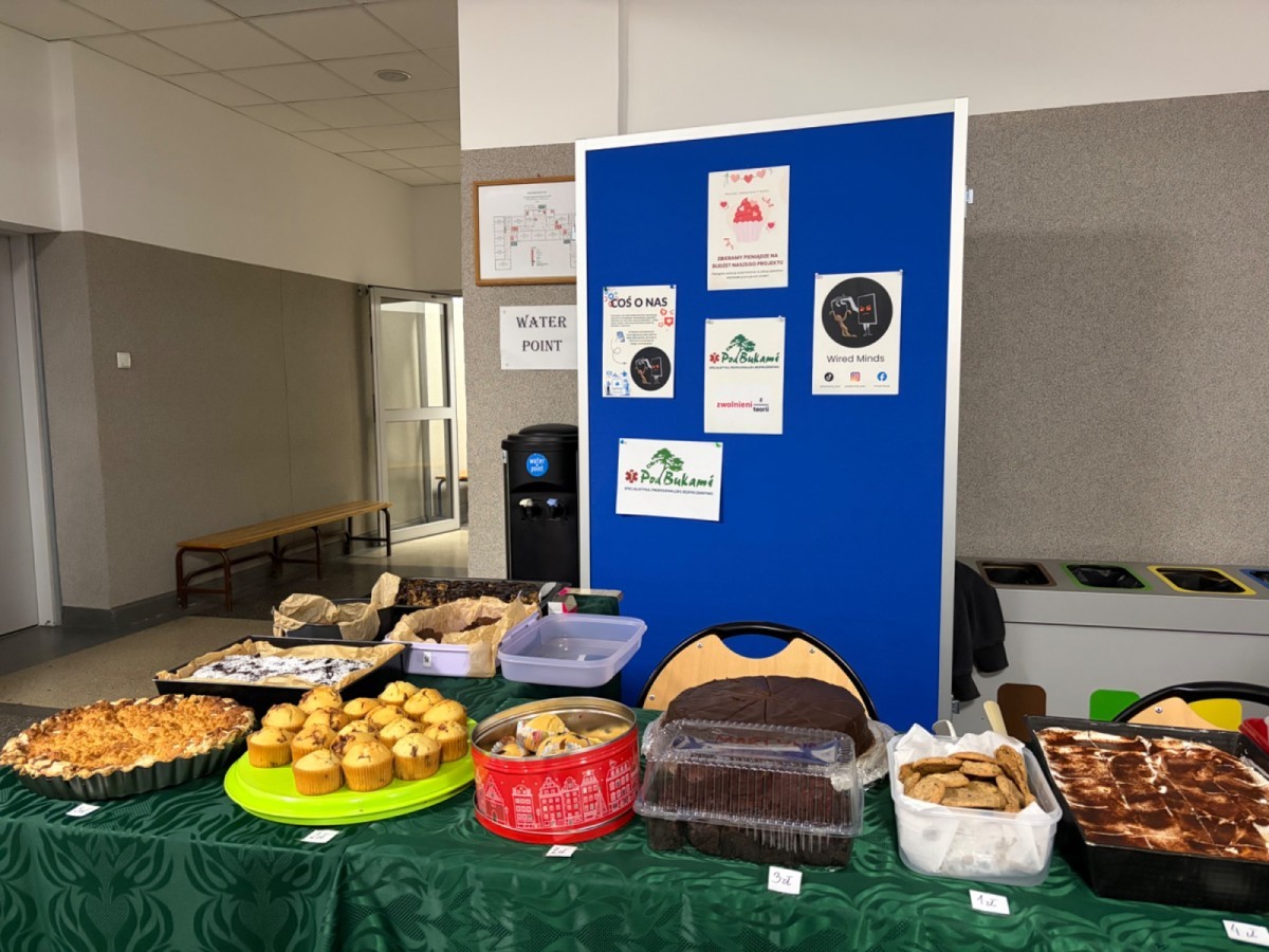 W dniu 4 lutego 2026 roku w naszej szkole odby艂 si臋 kiermasz ciast 馃zorganizowany w ramach projektu spo艂ecznego Wired Minds, realizowanego w ramach olimpiady praktycznej Zwolnieni z Teorii.