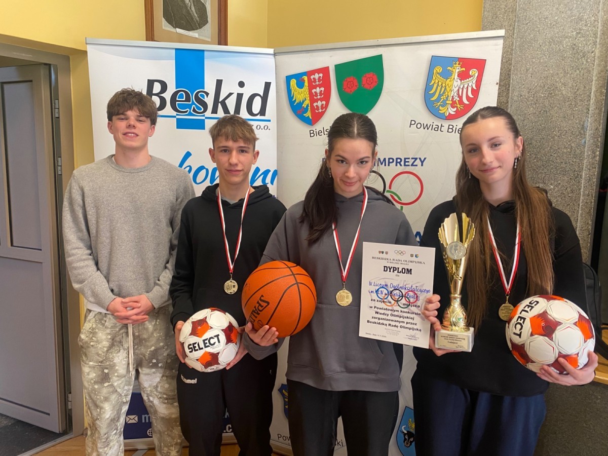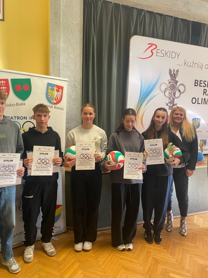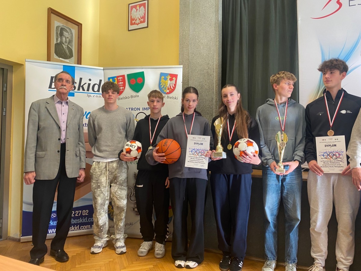 14 listopada wzięliśmy udział w Powiatowym Konkursie Wiedzy Olimpijskiej, organizowanym przez Beskidzką Radę Olimpijską. To wydarzenie od lat jest stałym punktem w naszym kalendarzu, ale w tym roku uczniowie „Czwórki” zdominowali rywalizację. Konkurs składał się z dwóch części: teoretycznej – wiedza o igrzyskach, historii i olimpijczykach oraz sportowej – zmagania sprawnościowe. W obu tych obszarach nasi uczniowie spisali się znakomicie! Konkurs uświetniły swoją obecnością wyjątkowe sportowe osobowości: p. Dorota Kwaśny-Lejawa – biegaczka narciarska, wielokrotna medalistka mistrzostw Polski, uczestniczka 3 igrzysk olimpijskich oraz p. Beata Bartków – Kwiatkowska – strzelczyni specjalizująca się w strzelaniu z pistoletu pneumatycznego, srebrna medalistka mistrzostw Europy, uczestniczka IO w Londynie w 2012 roku, obecna trenerka kadry narodowej.
